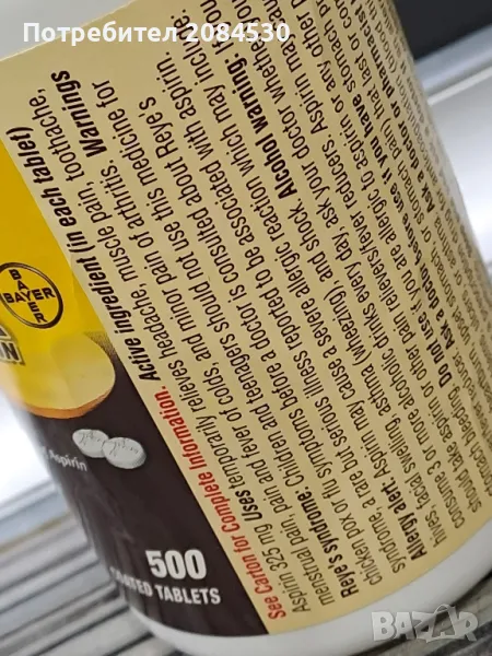 ASPIRIN BAYER genuine - USA /325mg-500coated tablets/ → Обява 48888896