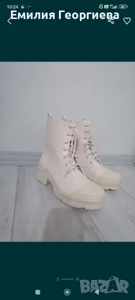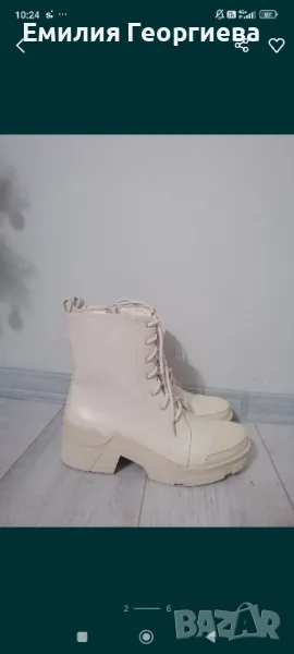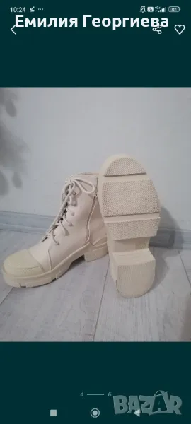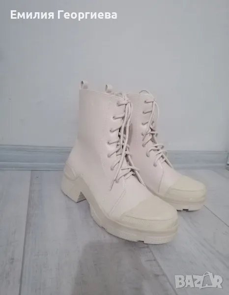 Модерни дамски боти в бежов цвят, номер 41 и си отговарят на номера. Размер на стелката в см. е 26/26.5 см. Обувани са веднъж, колко да преценя, че не са моя размер.