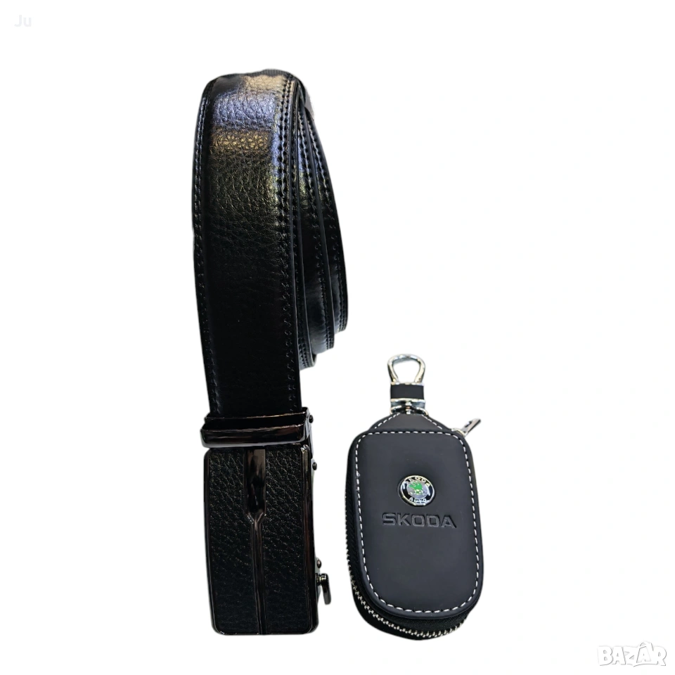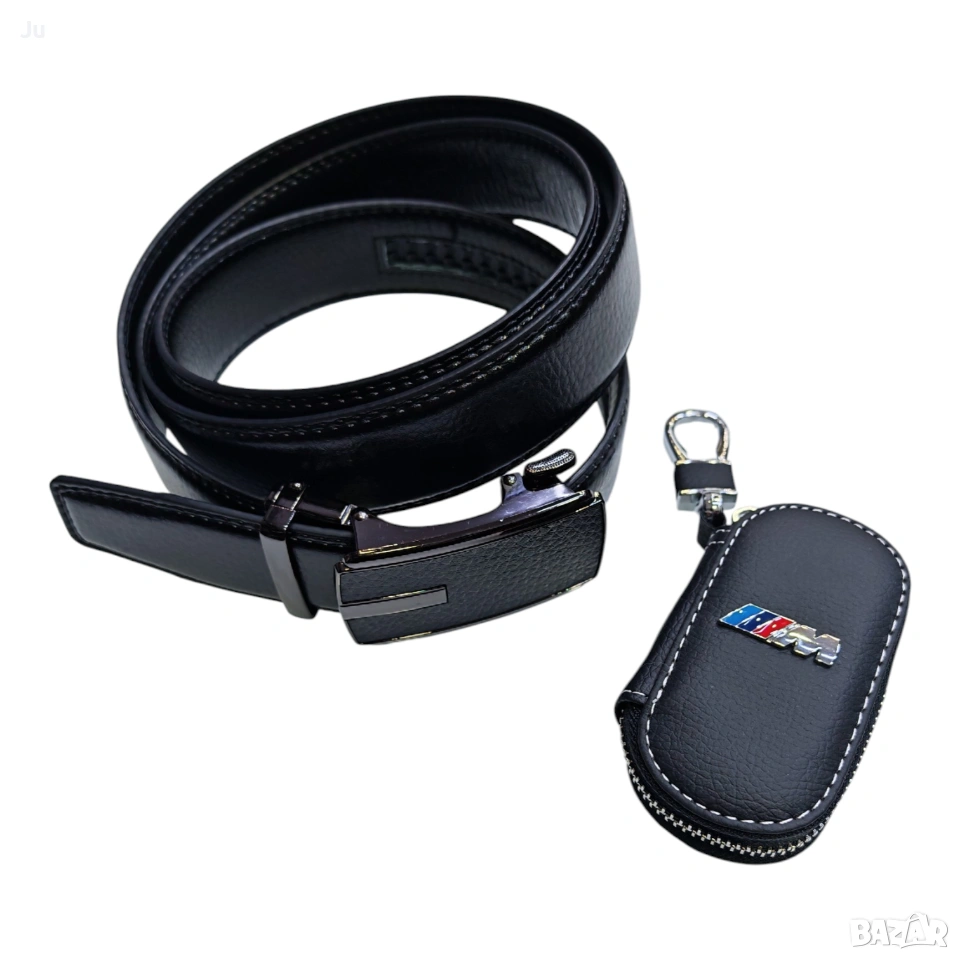 Естествена кожа мъжки колан в стилен дизайн и елегантна изработка. Подаръчен комплект с кожен ключодържател за volvo, bmv MPower Sline, Porsche, Mercedes, Skoda