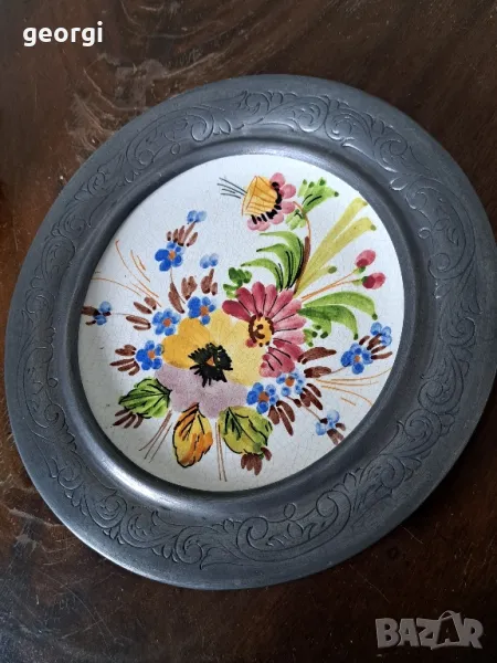 декоративна чиния за стена с гравиран калаен обков 3/4 → Обява 48889582