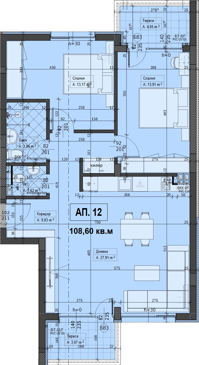 Сградите разполагат с едностайни, двустайни, тристайни и четиристайни апартаменти.