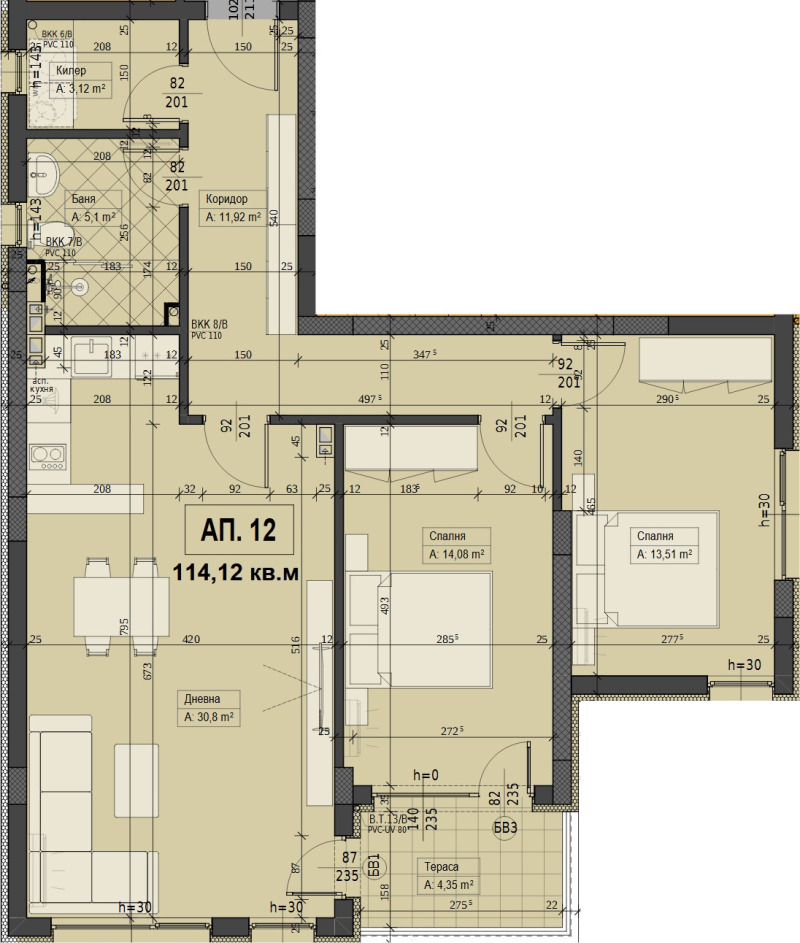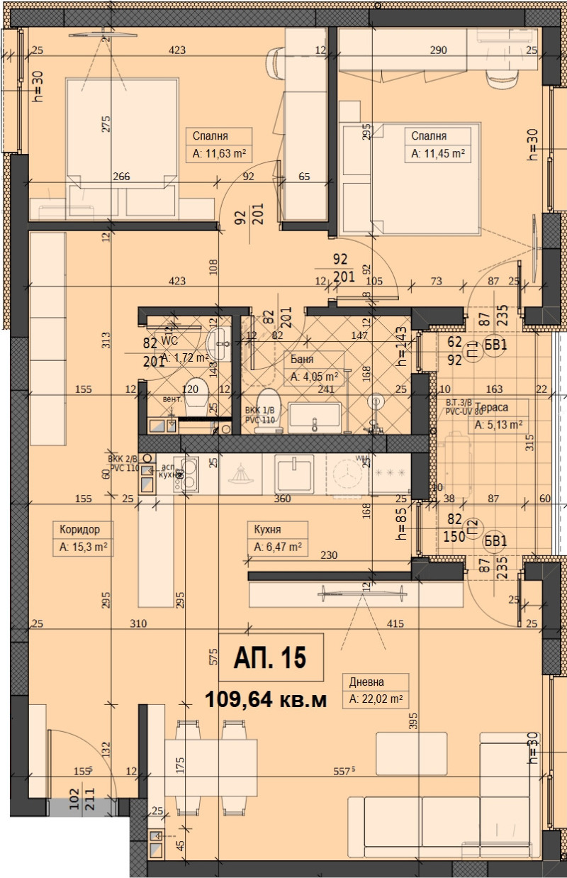 Сградите разполагат с едностайни, двустайни, тристайни и четиристайни апартаменти.