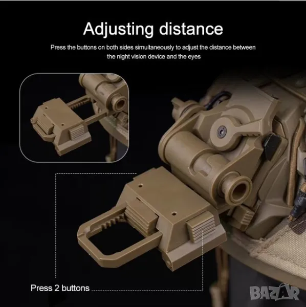 Аксесоар: Стойка за монтаж към NVG L4 G24 L4G24 PVS15 PVS18 GPNVG18 FAST OPS елементи към каски или ленти за глава за очила за нощно виждане / бинокъл за нощно виждане.