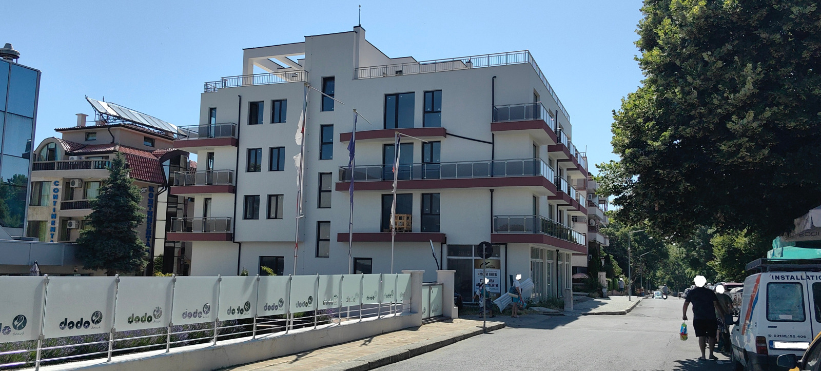 Жилището е част от новопостроена сграда с отлична локация разположена е в централната част на градчето, само на 160 м. от плаж, в близост до магазини, ЗХР. Освен с местоположението си, сградата впечатлява и с приятната си фасада. Изградена е от строител с десетилетия опит в строителния бранш, прилагащ най-високите стандарти в качеството на строителството, съобразени с морския климат. Характеристики на строителството - стоманенобетонна конструкция с тухлена зидария, топло- и хидроизолация, общите части по БДС - с качествен гранит, мазилки и парапети.Сградата разполага с асансьор. Сградата разполага с акт 14, като в момента се извършват интензивни довършителни строителни дейности, като в срок до края на 2025г., сградата ще разполага с акт 16! При подписан предварителен договор за имота има възможност окончателния договор /нотариалния акт/ да бъде подписан след получен акт 16!