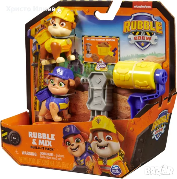 Paw Patrol Rubble and Crew Ръбъл и Микс с кинетичен пясък и строителни играчки