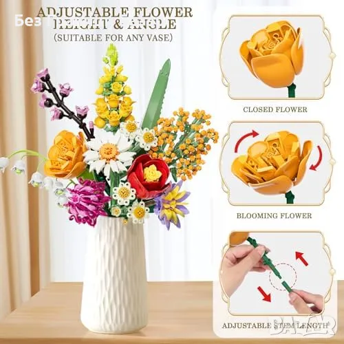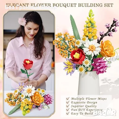 Нов 1070 броя DIY цветен букет – строителен комплект за декорация дом