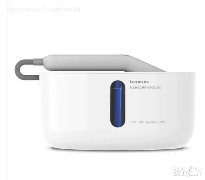 Sliding Care Force 2200 на Taurus е отлична парна четка, подходяща както за вертикално, така и за хоризонтално гладене. Той има голяма мощност от 2180 W, с налягане от 3,5 бара и непрекъсната пара от 44 g/min, което ще позволи да се елиминират дори най-трудните гънки и всичко, без да повдигате дрехата, благодарение на разтегливия си кабел от 1,6 m . Елиминирайте гънкити , миризмите и дезинфекцирайте. Включва две четки за различни видове дрехи и два филтъра против варовик за резервоара
