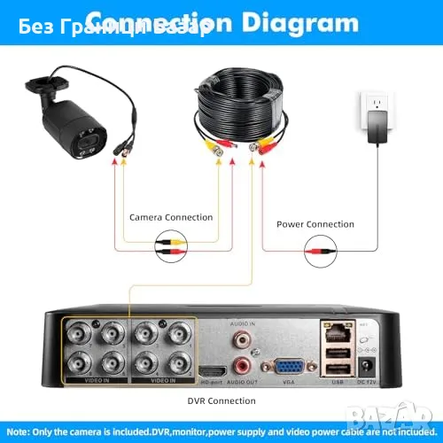Изисква DVR и захранване (не са включени) – работи само като част от система