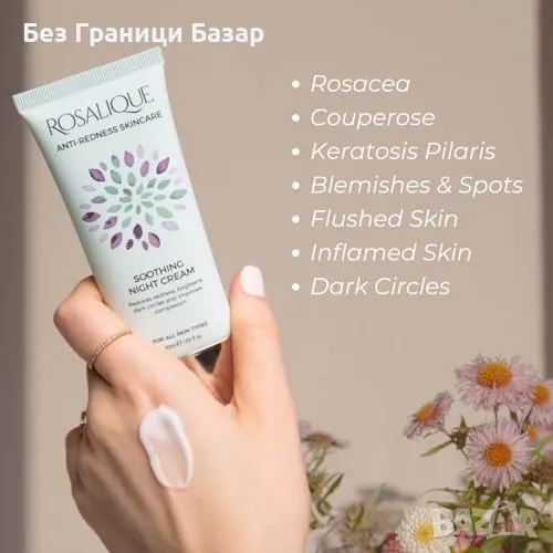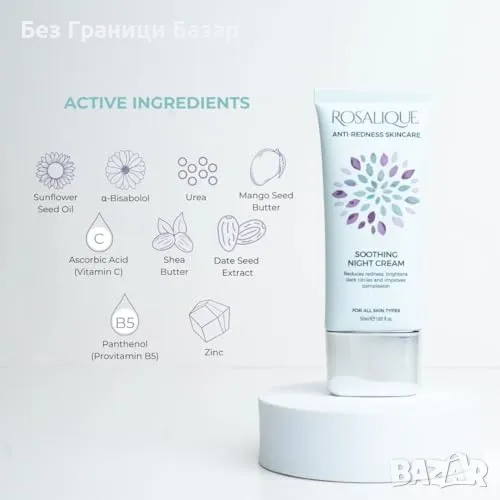 Нов Успокояващ нощен крем Rosalique – чувствителна и зачервена кожа