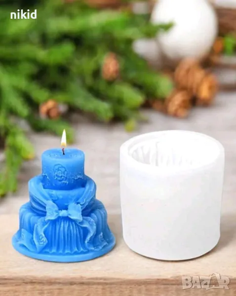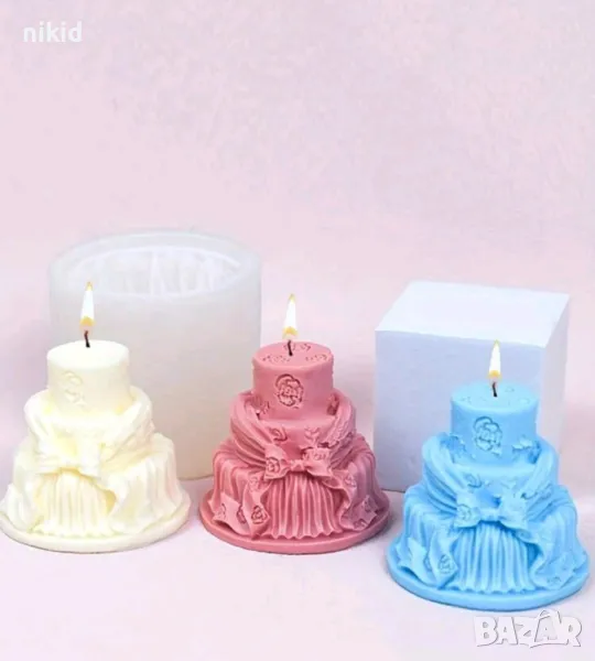 3D Висока торта на етажи с пандела панделка силиконов молд форма фондан шоколад гипс свещ смола → Обява 48893222