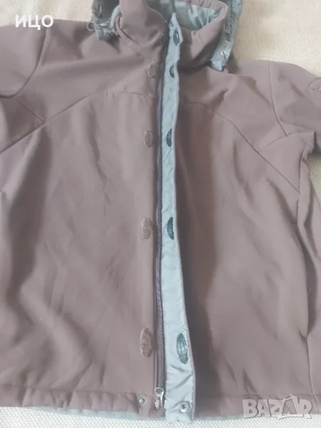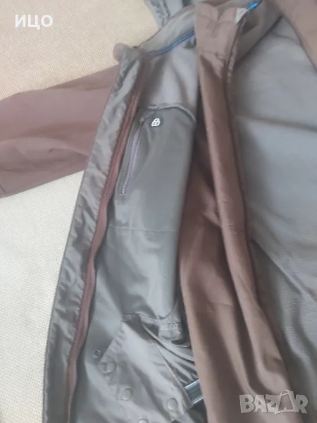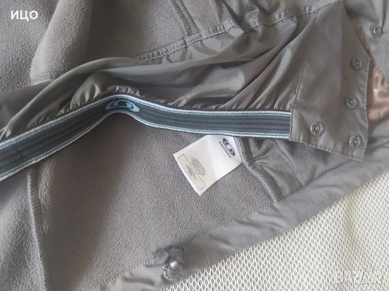 Salomon. Има следи от употреба, долният цип на външното яке не върви а горния на моменти трудно тръгва на горе. Различни захващания и протривания на якетата и на яките. Черната лента на кръста на външното тяло е напукана и се рони. Джобове с ципове на горното яке, на вътрешното без ципове на джобовете. Сваляща се качулка с цип. Дължина от рамо до долу 74см широчина на подмишниците 66см. Размер ХL.