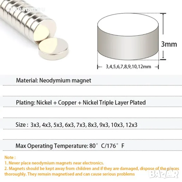 магнитни свойства, ако се нагреят над 80°C/176°F.
