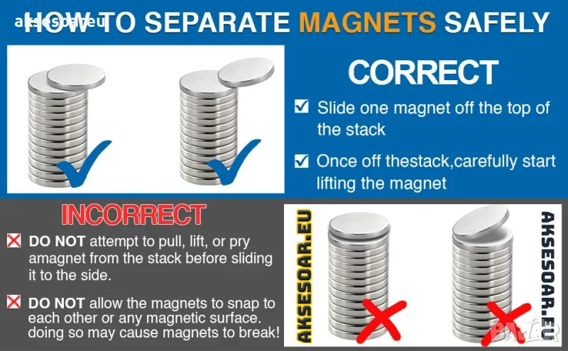 бъдат силно притиснати между два привличащи се магнита. Чупи се лесно, моля,