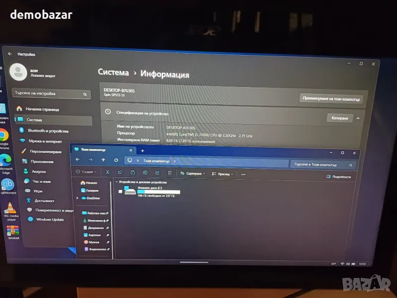 Процесор:Intel® Core™ i5-7200U Processor (3M Cache, up to 3.10 GHz)