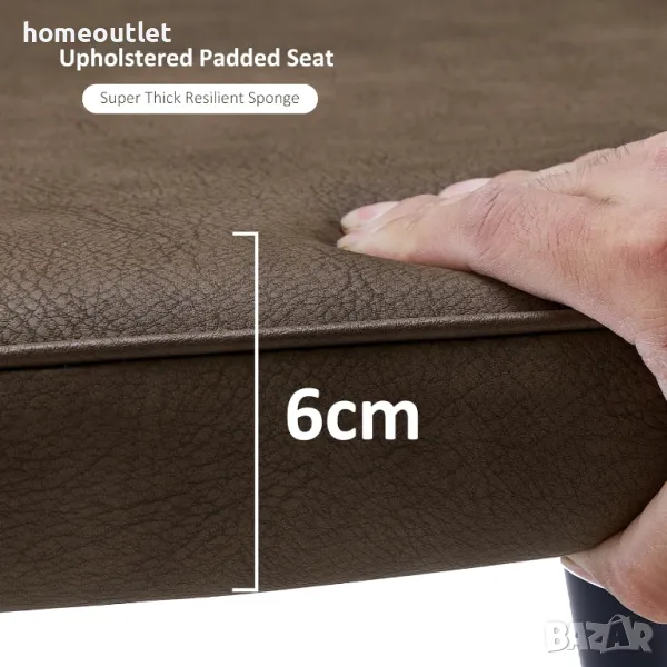 Седалката и облегалката са подплатени с пяна с висока плътност, тапицирани с висококачествена изкуствена кожа и удължени шевове за допълнителна елегантност.
