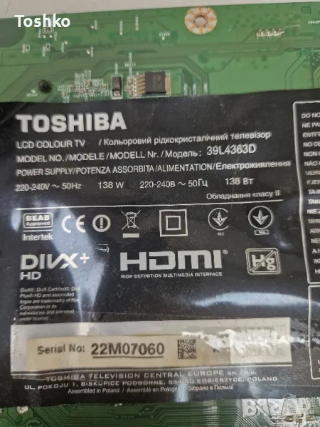 TOSHIBA 39L4363D MAIN BOARD 32L4300 REV:1.02A POWER BOARD B191-102 PANEL T390HVN01.0 → Обява 48894933