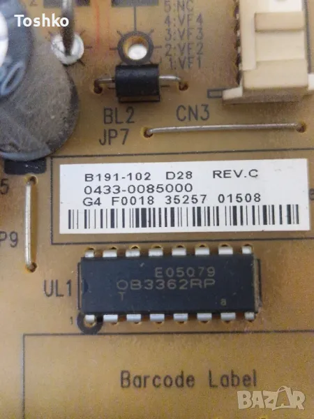 TOSHIBA 39L4333D MAIN BOARD 32L4300 REV:1.02 POWER BOARD B191-102 PANEL T390HVN01.0, снимка 1 - Части и Платки - 48895295 TOSHIBA 39L4333D MAIN BOARD 32L4300 REV:1.02 POWER BOARD B191-102 PANEL T390HVN01.0, снимка 2 - Части и Платки - 48895295 TOSHIBA 39L4333D MAIN BOARD 32L4300 REV:1.02 POWER BOARD B191-102 PANEL T390HVN01.0, снимка 3 - Части и Платки - 48895295 TOSHIBA 39L4333D MAIN BOARD 32L4300 REV:1.02 POWER BOARD B191-102 PANEL T390HVN01.0, снимка 4 - Части и Платки - 48895295 TOSHIBA 39L4333D MAIN BOARD 32L4300 REV:1.02 POWER BOARD B191-102 PANEL T390HVN01.0, снимка 5 - Части и Платки - 48895295 TOSHIBA 39L4333D MAIN BOARD 32L4300 REV:1.02 POWER BOARD B191-102 PANEL T390HVN01.0, снимка 6 - Части и Платки - 48895295 TOSHIBA 39L4333D MAIN BOARD 32L4300 REV:1.02 POWER BOARD B191-102 PANEL T390HVN01.0, снимка 7 - Части и Платки - 48895295 1/7