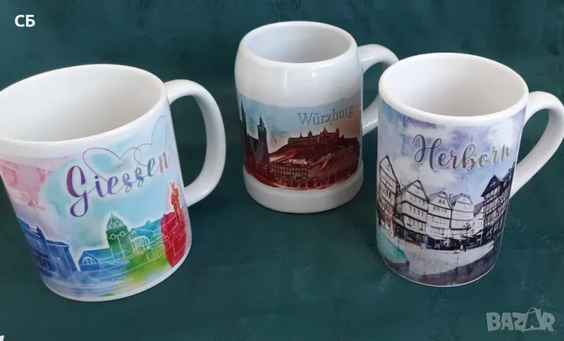 Порцеланови чаши със знакови забележителности от различни градове в Германия и от Египет. Цената е за брой.