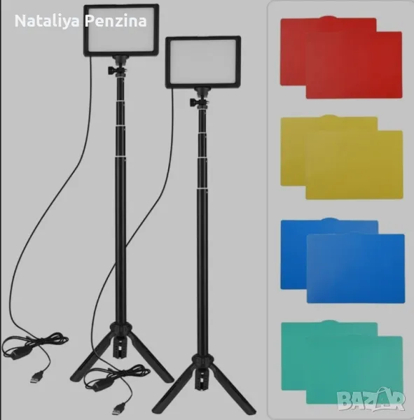 Комплект 2 броя осветителни тела за фотостудио/филтри, LED, регулируема стойка, 3200-5500K, 15W → Обява 48896332