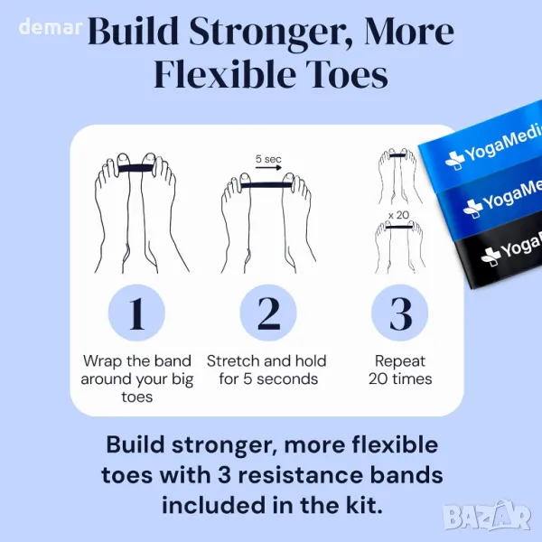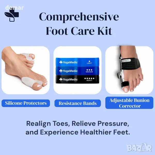 YogaMedic комплект за корекция на бунион - регулируем, шина на бунион и съпротивителни ленти