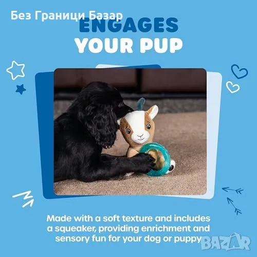 Играчка за кучета с дъвчащ ринг – идеална за малки породи и кученца над 8 седмици