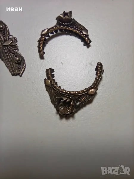 Парчета от много стари бижута, обеци и може би пръстен, много фина изработка.