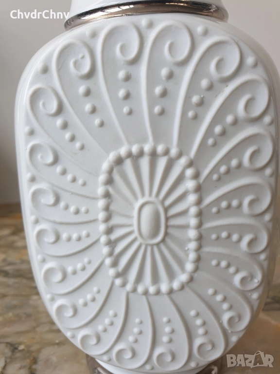 1970-те, бяла бисквит (ВАЗА 3) Височина 20 см, ширина 10х7 см (макс), отвор 7 см, двустранна, плътен/тежък