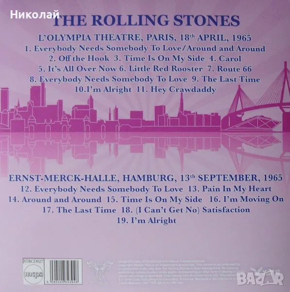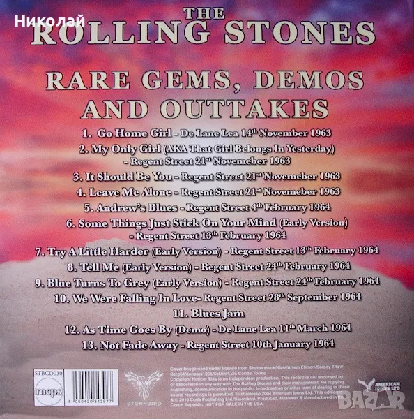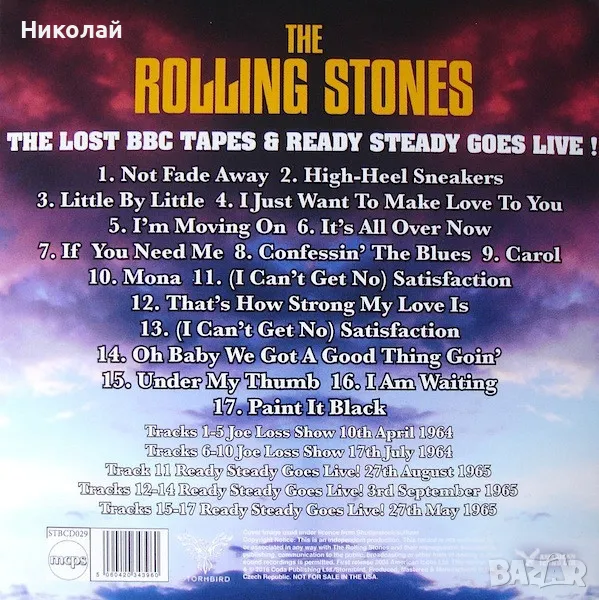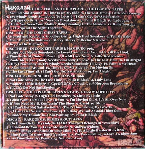 Много редки записи на великата група, само за ценители. 6 диска в луксозна кутия. Опис на песните:Another Time Another Place1-1Around And Around1-2Time Is On My Side1-3The Last Time1-4Little Red Rooster1-5Everybody Needs Somebody To Love1-6(I Can't Get No) Satisfaction1-7As Tears Go By1-819th Nervous Breakdown1-9Paint It Black1-10Lady Jane1-11Have You Seen Your Mother Baby Standing In the Shadow1-12Ruby Tuesday1-13Let's Spend The Night TogetherThe Lost Chess Tapes2-1Stewed And Keefed2-2Goodbye Girl2-3High Heel Sneakers2-4Tell Me Baby2-5Meet Me In The Bottom2-6Mercy, Mercy2-7Reelin' & Rockin'2-8Key To The HighwayLive In Paris & Hamburg 19653-1Everybody Needs Somebody To Love/Around And Around3-2Off The Hook3-3Time Is Ony My Side3-4Carol3-5It's All Over Now3-6Little Red Rooster3-7Route 663-8Everybody Needs Somebody to Love3-9The Last Time3-10I'm Alright3-11Hey Crawdaddy3-12Everybody Needs Somebody To Love3-13Pain In My Heart3-14Around And Around3-15Time Is On My Side3-16I'm Moving On3-17The Last Time3-18(I Can't Get No) Satisfaction3-19I'm AlrightHawaii 19664-1Not Fade Away4-2The Last Time4-3Paint It Black4-4Lady Jane4-5Mother's Little Helper4-6Gett Off Of My Cloud4-719th Nervous Breakdown4-8(I Can't Get No) SatisfactionThe Lost BBC Tapes & Ready Steady Goes Live!5-1Not Fade Away5-2High Heel Sneakers5-3Little By Little5-4I Just Wanna Make Love To You5-5I'm Moving On5-6It's All Over Now5-7If You Need Me5-8Confessin' The Blues5-9Carol5-10Mona5-11(I Can't Get No) Satisfaction5-12That's How Strong My Love Is5-13(I Can't Get No) Satisfaction5-14Oh Baby We Got A Good Thing Goin'5-15Under My Thumb5-16I Am Waiting5-17Paint It BlackRare Gems, Demos & Outtakes6-1Go Home Girl6-2My Only Girl (Aka The Girl Belongs To Yesterday)6-3It Should Be You6-4Leave Me Alone6-5Andrew's Blues6-6Some Things Just Stick On Your Mind6-7Try A Little Harder6-8Tell Me6-9Blue Turns To Grey6-10We Were Falling In Love6-11Blues Jam6-12As Time Goes By6-13Not Fade Away