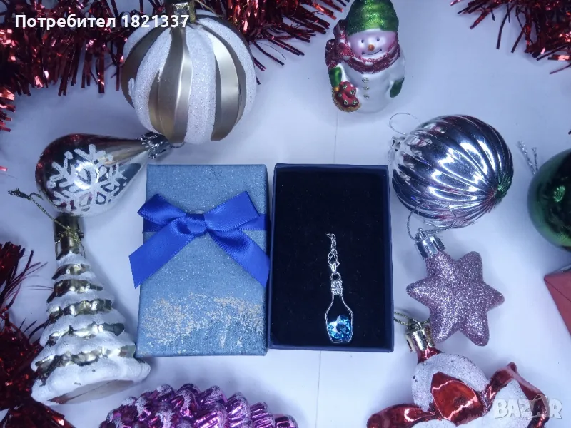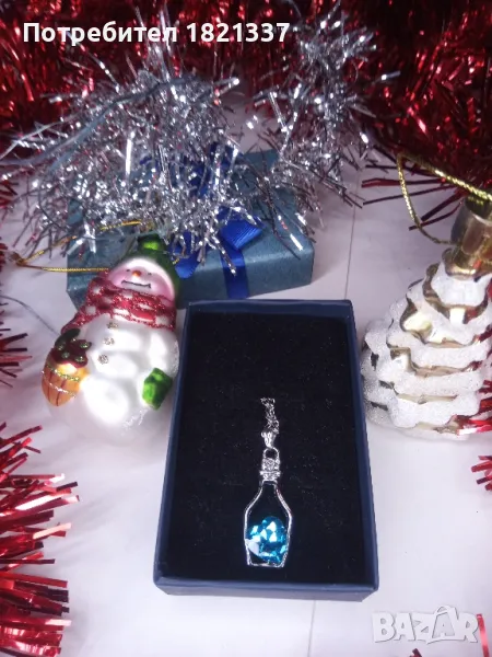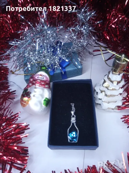 Колие с кристал. Цвят океанско синьо. Форма на сърце в бутилка.