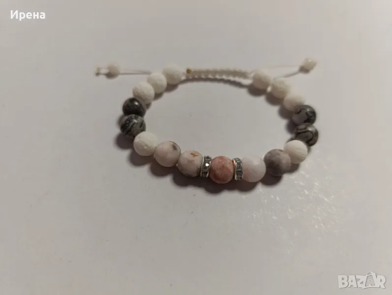 Гривна, изработена от естествени камъни Яспис(сив и розов зебров яспис-мат) и бял Вулканичен камък (Лава)