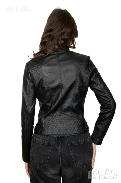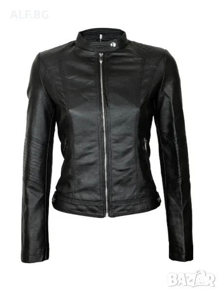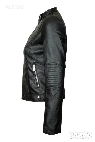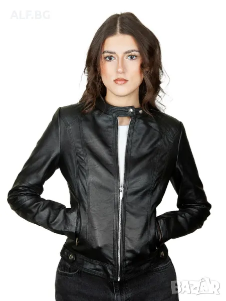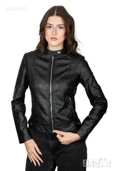Елегантно дамско кожено яке от висококачествена еко кожа. Кожата на якето е много мека и приятна на допир. Вътрешната част на якето е изработена от шушлякова подплата. Подходящо за пролетно-есенния сезон.