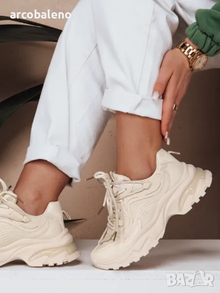 Тези уникални кецове с дебела подметка са комбинация от стил и практичност. Моделът е изработен от екологична кожа, плат и гумени вложки. Вложки от плат и по-дебела подметка осигуряват по-добър комфорт. Моден избор за активни хора.