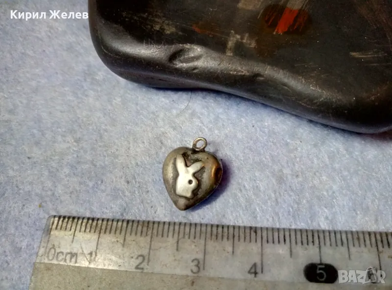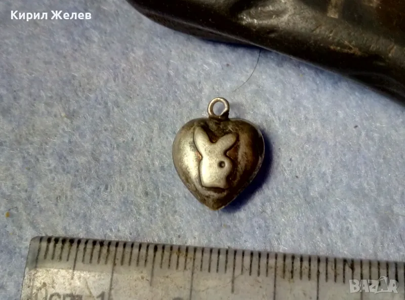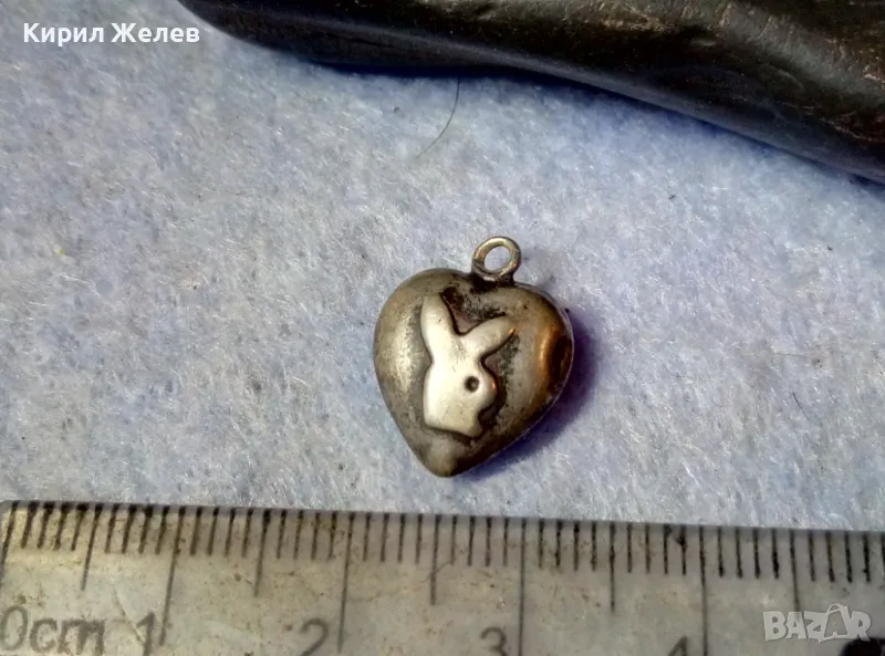 Стар КОЛЕКЦИОНЕРСКИ СЪРЦЕВИДЕН СРЕБЪРЕН ПЕНДАНТ Със ЗАЙЧЕТО на ПЛЕЙБОЙ ВИСОКА ПРОБА СРЕБРО 42015