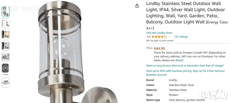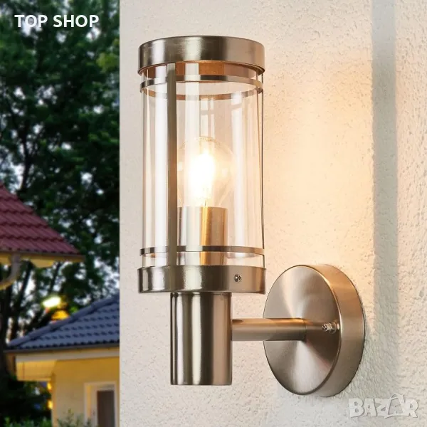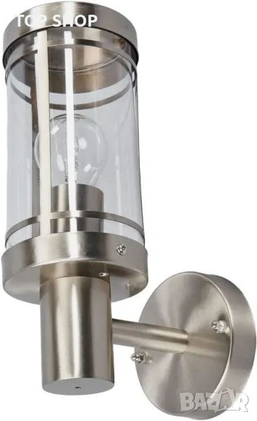 Външна стенна лампа Lindby от неръждаема стомана, IP44, сребърна стенна лампа, външно осветление, стена, двор, градина, вътрешен двор, балкон, стена за външно осветление