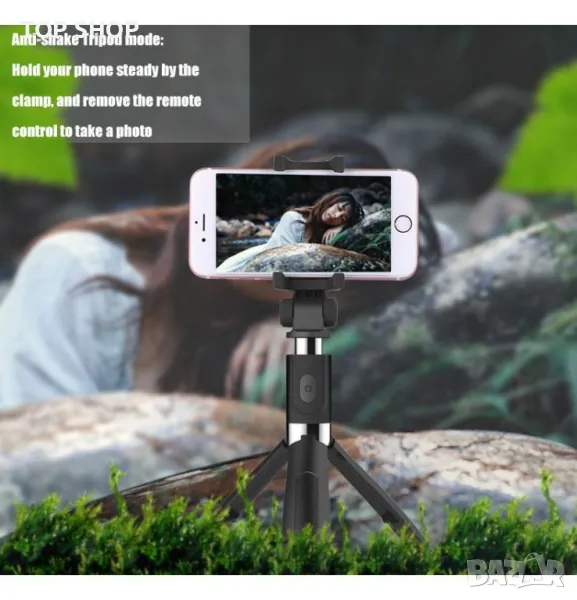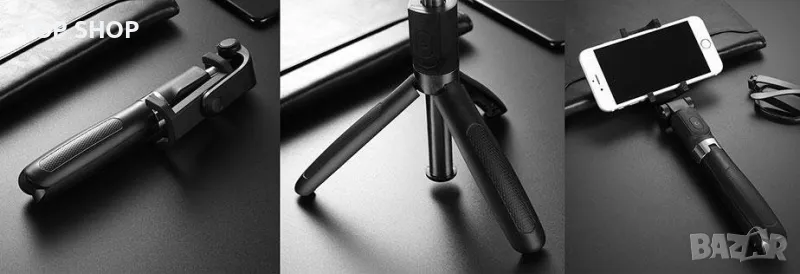 Selfie Stick с Bluetooth дистанционно управление и функция статив е интересно предложение за всички любители на увековечаването на моменти от живота. Универсалният характер на устройството се състои от Bluetooth свързаност и плъзгаща се дръжка. Дръжката на уреда е разделена на три крака, които след разгъване образуват висококачествен статив. Дистанционното управление, което е част от комплекта, може както да се прикрепи към самия селфи стик, така и да се използва като отделен елемент от комплекта, например при задействане на снимки от разстояние.