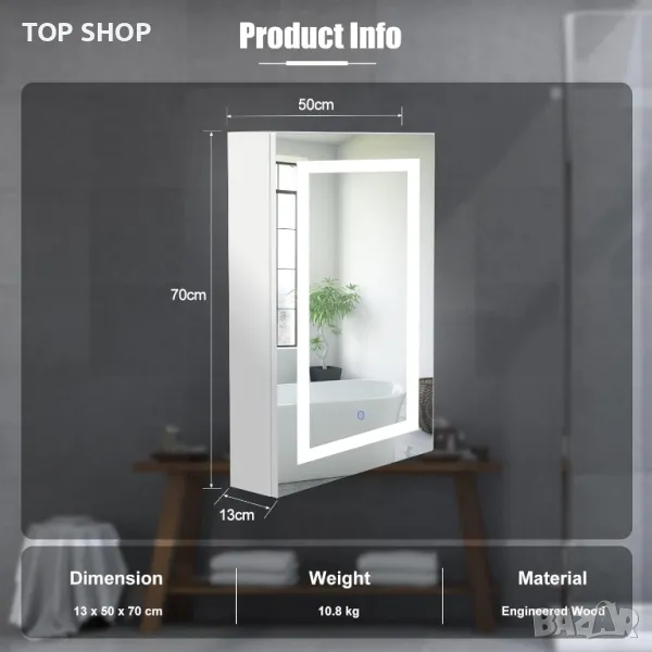 LED огледало шкаф с touch светлини шкаф за лекарства 50х70 см