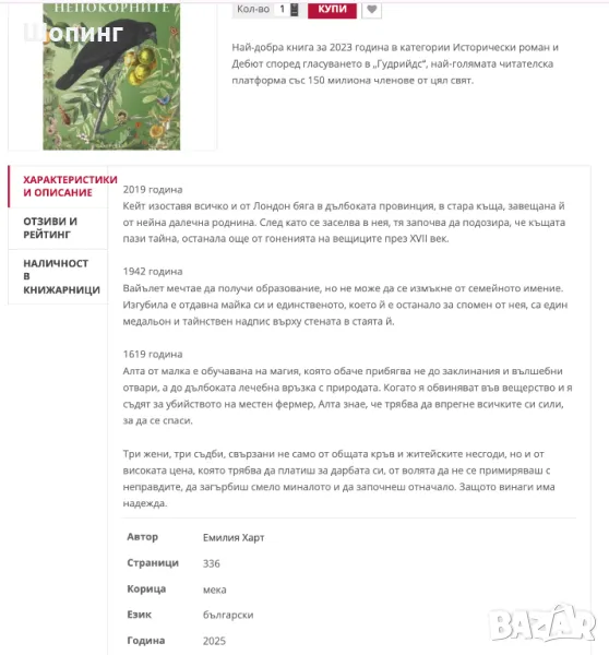 1. НОВ бестселър - исторически роман, изд. 2025! "Непокорните". Автор: Емилия Харт - цена 11 евро. Обявена за най-добра книга в категории Исторически роман и Дебют според гласуването в „Гудрийдс“, най-голямата читателска платформа със 150 милиона членове от цял свят. Сюжет: Три жени, три съдби, свързани не само от общата кръв и житейските несгоди, но и от високата цена, която трябва да платиш за дарбата си, от волята да не се примиряваш с неправдите, да загърбиш смело миналото и да започнеш отначало. Защото винаги има надежда.