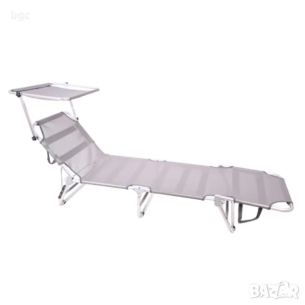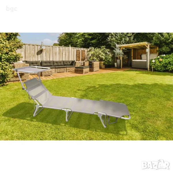 - Комфорт и функционалност: Изработен от сив текстил и издръжлив алуминий, този шезлонг предлага комфорт и подкрепа за моменти на почивка на открито.