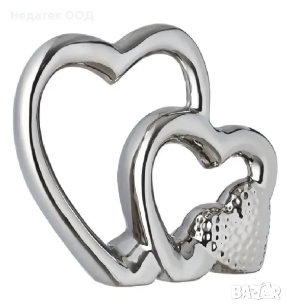 Керамична декорация за маса, двойно сърце и малко с релефен дизайн. Керамичните декорации са изключително популярни за интериорна декорация, тъй като предлагат уникална естетика и естествена красота. Керамичният материал съчетава традиция с изкуство и може да украси всеки ъгъл на дома, предлагайки топлина, характер и текстура на пространството. С внимание към детайла, те добавят артистичния щрих, който търсите.
