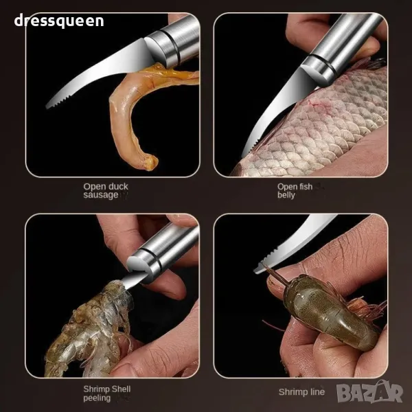 Специалният дизайн на върха, наподобяващ орлов клюн, позволява бързо разрязване на черупката и достъп до чистото месо на скаридата с минимално усилие.