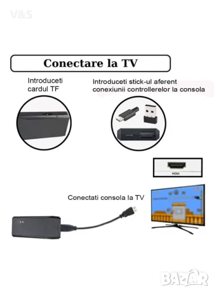 HDMI изход - Насладете се на ретро видеоиграта на телевизор с голям екран, като използвате мини HDMI кабела, свързан към телевизора. Тази конзола за видеоигри поддържа HDMI изход с висока разделителна способност, моля, уверете се, че вашият екран има HDMI входен порт. Безжичната телевизионна игрова конзола може да се свърже към телевизор/TV приемник/компютър/лаптоп/проектор .