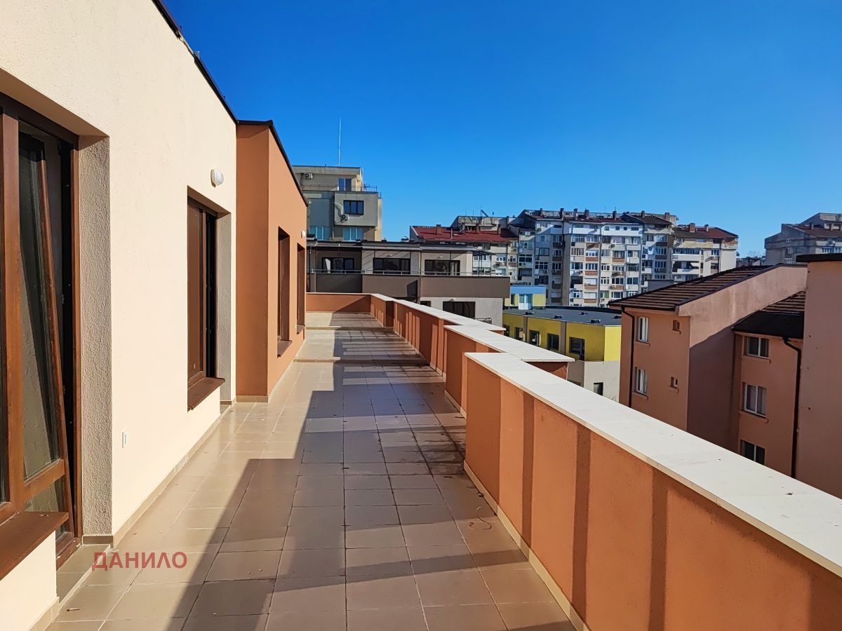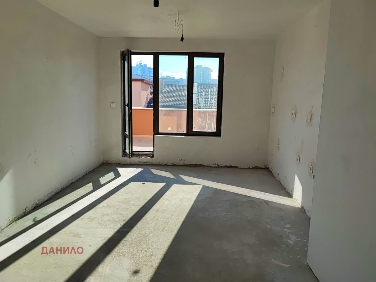 Предлагаме ви апартамент на пети жилищен етаж, с две спални, кухня с трапезария, просторна всекидневна, коридор, баня с тоалетна, отделна тоалетна, складово помещение и две тераси. Изложение юг/север. Степента на завършеност е по БДС, 6 камерна, немска PVC дограма златен дъб, с австрийски обков, блиндирана входна врата, външна топлоизолация.