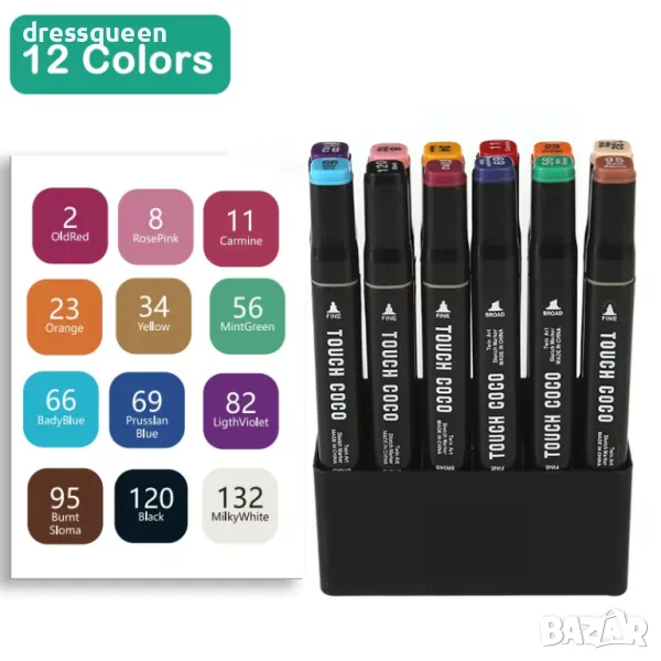 Практична чанта за носене: Здрава и компактна, тя позволява лесно съхранение и пренасяне на маркерите навсякъде, където ви потрябват.