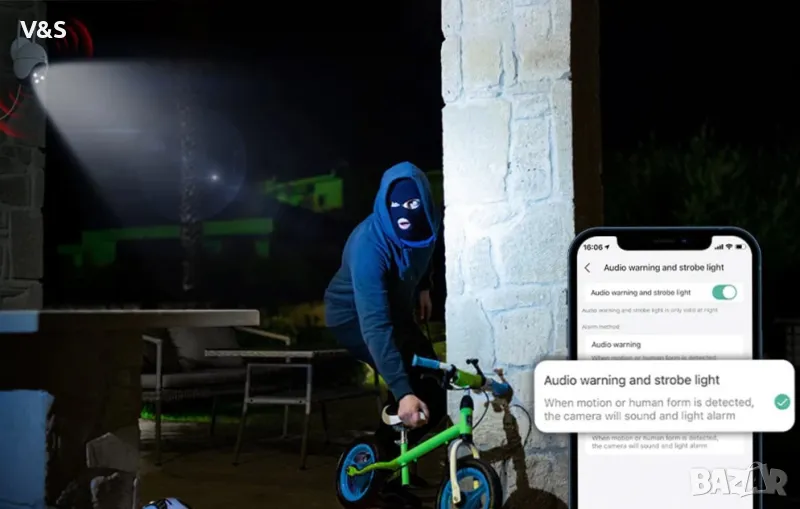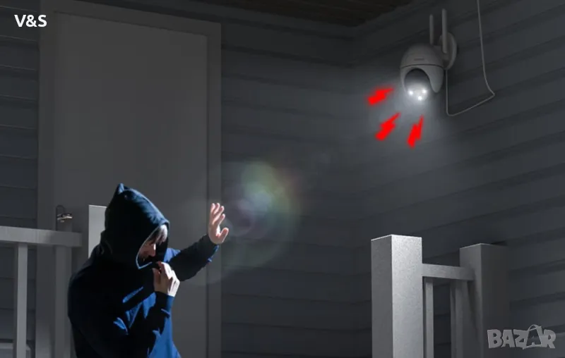 Камерата е оборудвана с усъвършенствана алармена система, която може да бъде персонализирана. Можете да изберете един от трите режима: звукова аларма, светлинна аларма или комбинация от тях. Нещо повече, в приложението можете да запишете свой собствен алармен звук, който ще се възпроизвежда при откриване на нарушител - това може да бъде лай на куче или вашият глас. Този звук ефективно възпира потенциалните нарушители, като осигурява допълнителна сигурност на имота ви.