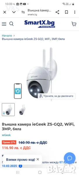 Външна камера ieGeek ZS-GQ2, WiFi, 3MP, бяла,2 бр комплект