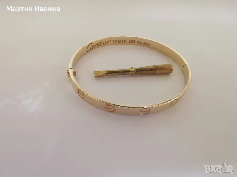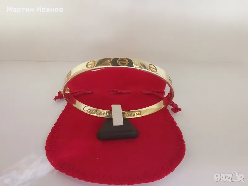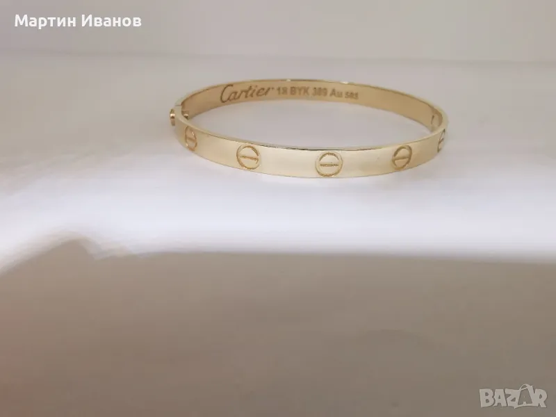 Златна гривна Картие, елипса, плътна, 14к, 585пр, 19.57гр, вътрешен диаметър 59мм, ширина 5.5мм, може и бартер само срещу злато с доплащане