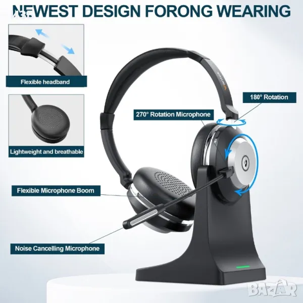 Професионални слушалки за кол център: Слушалките Wantek 882BT с шумопотискащ микрофон са специално разработени за разговори в кол центъра. Бутонът за заглушаване на микрофона ви позволява бързо да управлявате микрофона по време на онлайн срещи, а светлинният индикатор ви напомня за текущия режим.