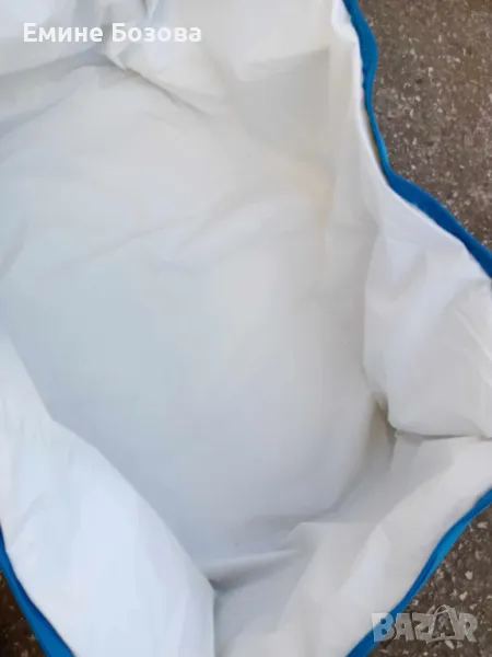 Чантата е изработена отвън от пластифициран материал за лесно и бързо почистване, отвътре е с подплата, която помага на храната да запази температурата си.