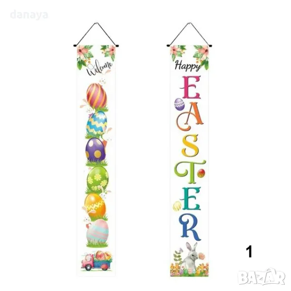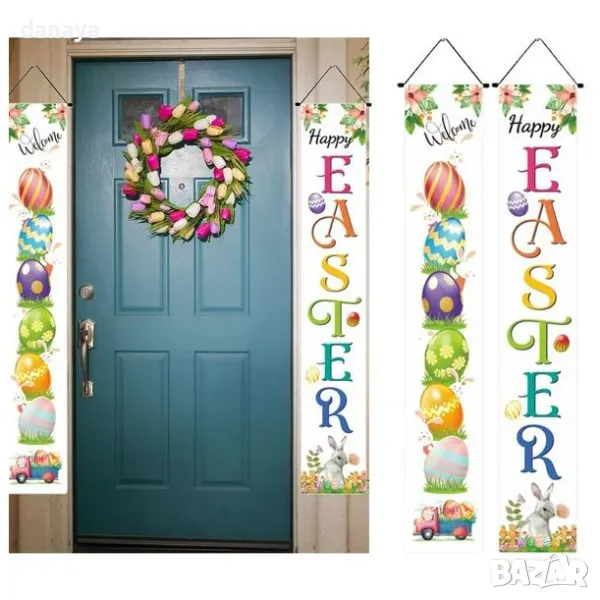 Подарете на дома си празничен облик с този висящ Великденски банер! 🌼 С размери 175×30 см, той е идеален за врати, стени или балкони. Комплектът включва 2 броя с красиви и цветни великденски мотиви – перфектни за създаване на топла и уютна атмосфера! 🏡✨