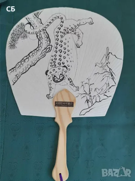 18. Ветрило от Корея - ръчнорисувано, с дървена дръжка - дръжка 19 см, диаметър на ветрилото 28 см - 5 евро